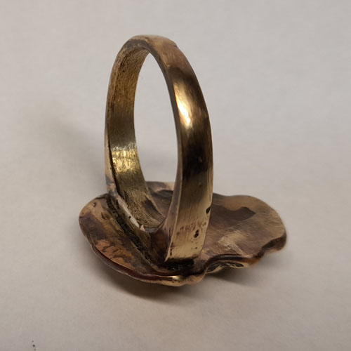 La bague est réalisée en 2 parties obtenues par fonte et coulage dans un moule en terre de Delft. Les 2 parties sont ensuite assemblées par brasure au fil d’argent.